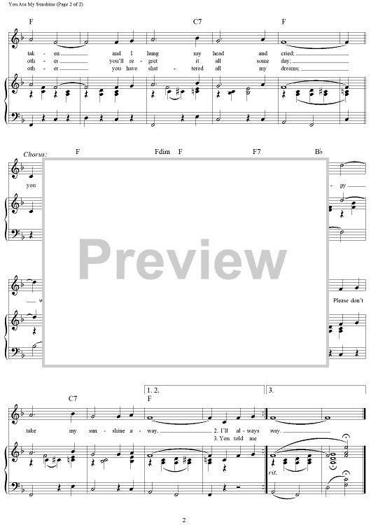Digital Sheet Music for You Are My Sunshine by Ray Charles, Charles Mitchell, Jimmie Davis scored for Piano/Vocal/Chords; id:308058