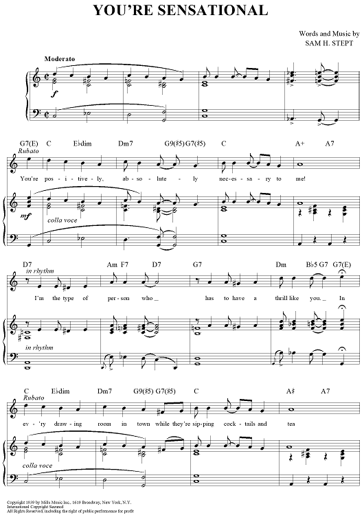 Digital Sheet Music for You're Sensational by Sam H. Stept scored for Piano/Vocal/Chords; id:419219