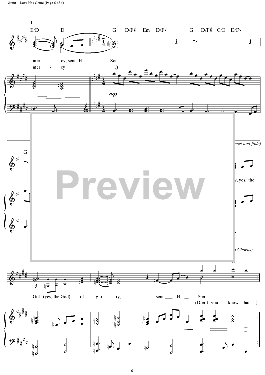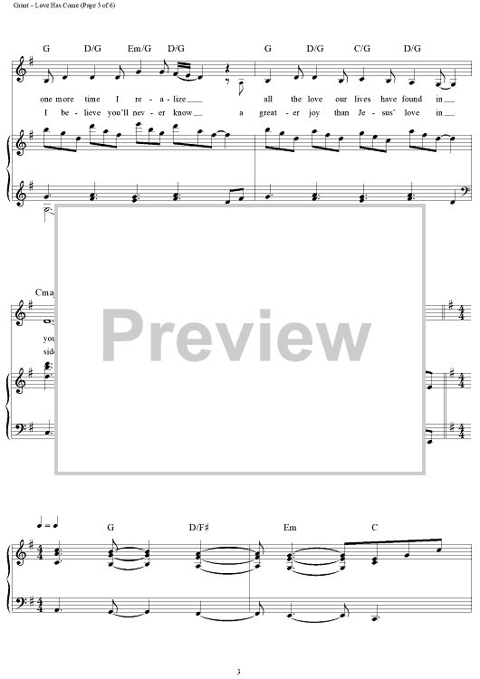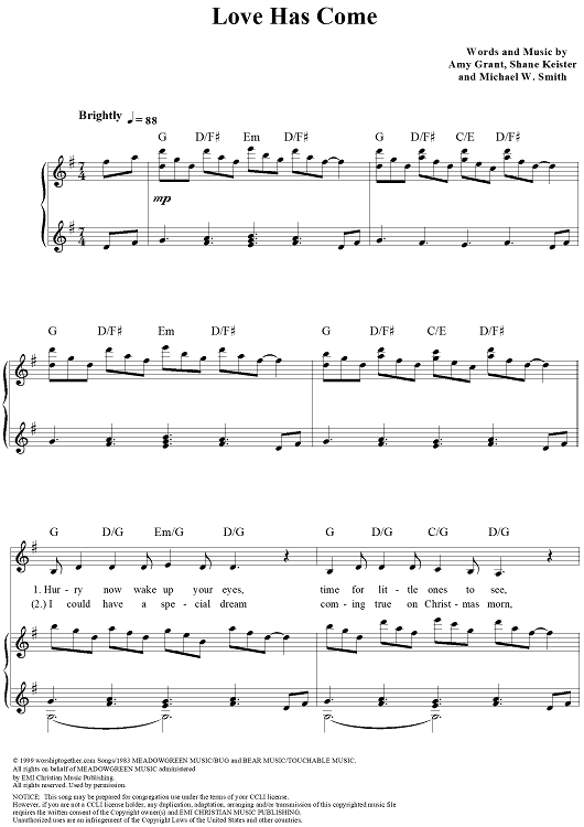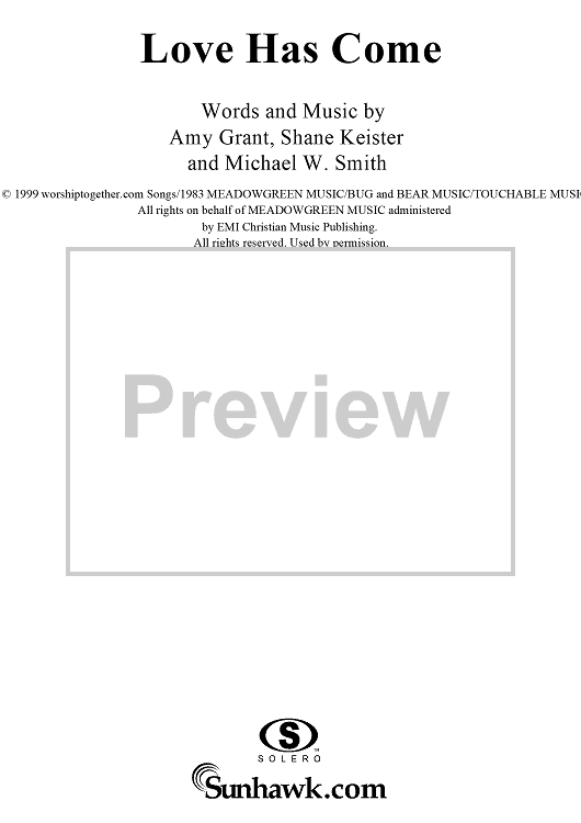 Digital Sheet Music for Love Has Come by Michael W. Smith, Shane Keister, Amy Grant scored for Piano/Vocal/Chords; id:267624