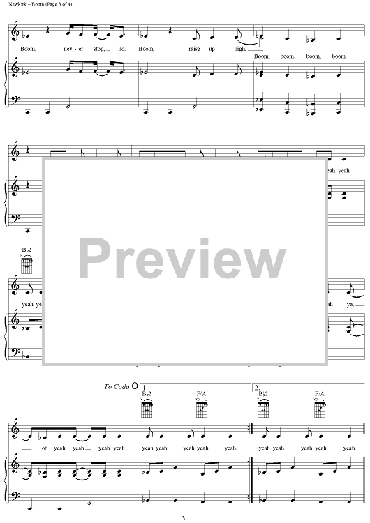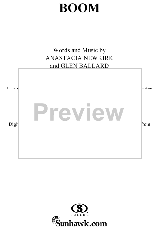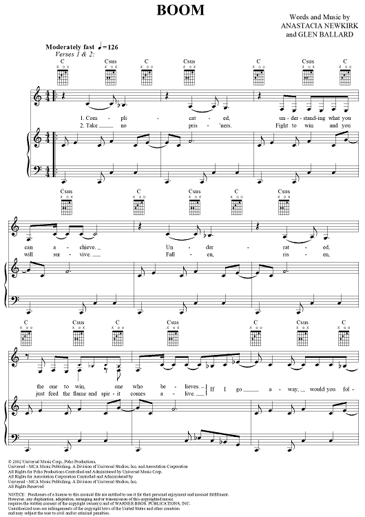 Digital Sheet Music for Boom by Glen Ballard, Anastacia Newkirk, Anastacia scored for Piano/Vocal/Chords; id:289608