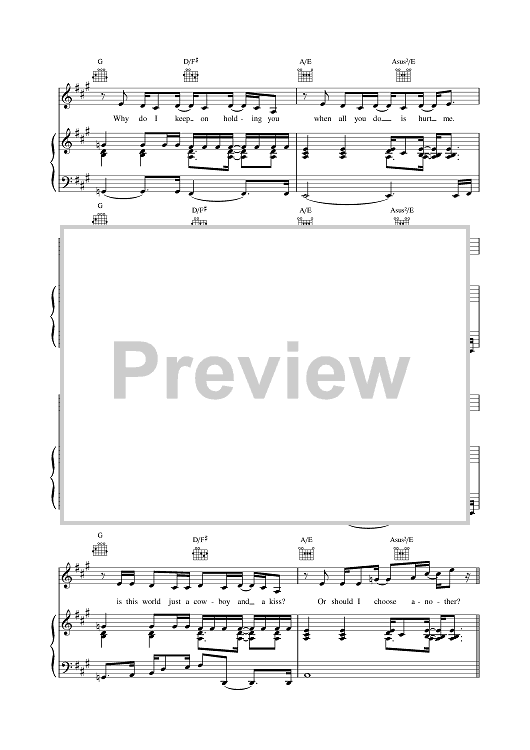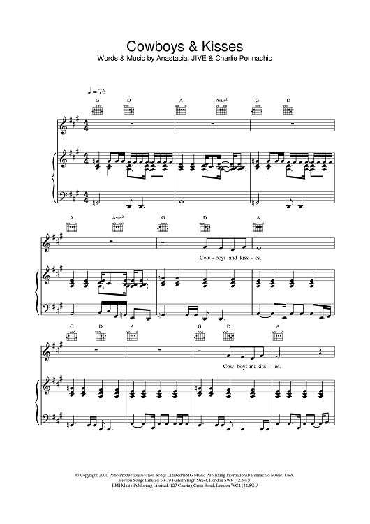 Digital Sheet Music for Cowboys & Kisses by Anastacia, JIVE, Charlie Pennachio scored for Piano/Vocal/Chords; id:380067