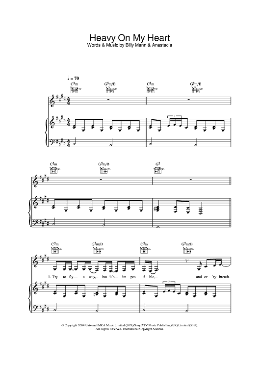 Digital Sheet Music for Heavy On My Heart by Anastacia scored for Piano/Vocal/Chords; id:378465