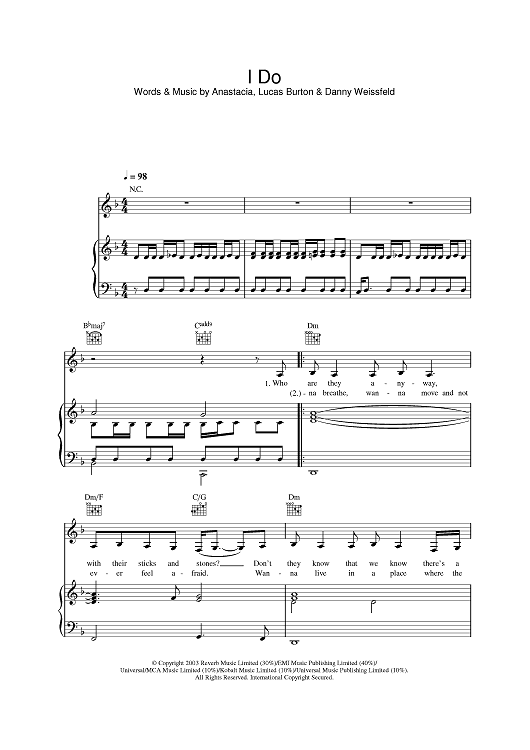 Digital Sheet Music for I Do by Anastacia scored for Piano/Vocal/Chords; id:378466