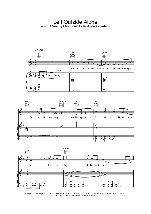 Digital Sheet Music for Left Outside Alone by Anastacia scored for Piano/Vocal/Chords; id:378467