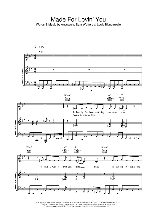 Digital Sheet Music for Made For Loving You by Anastacia, Louis Biancaniello, Sam Watters scored for Piano/Vocal/Chords; id:380070