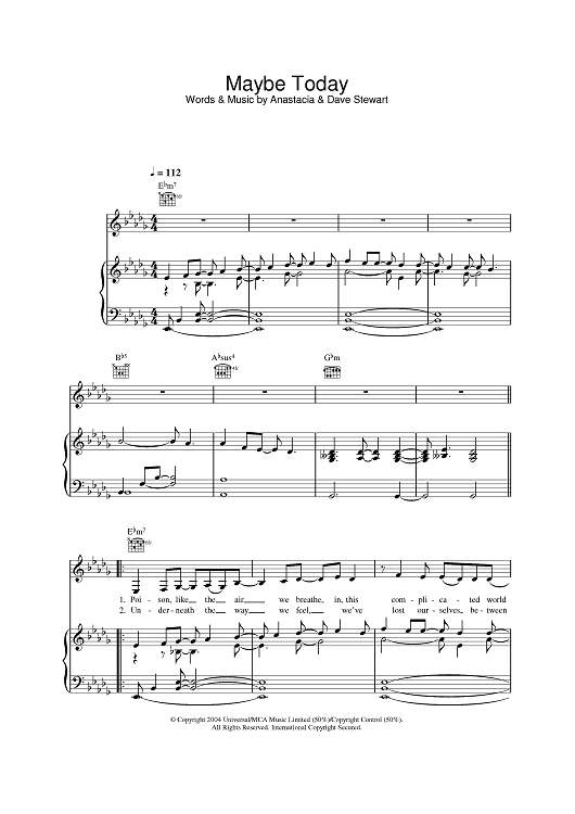 Digital Sheet Music for Maybe Today by Anastacia scored for Piano/Vocal/Chords; id:378475