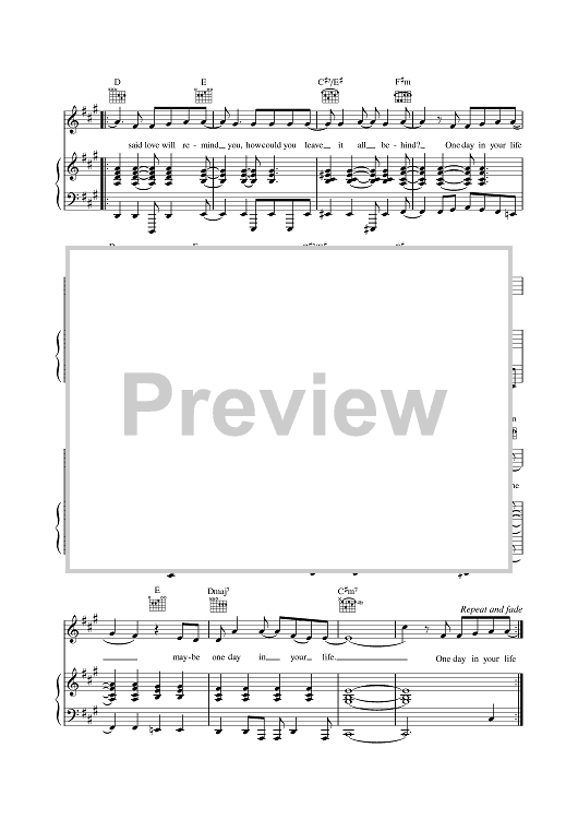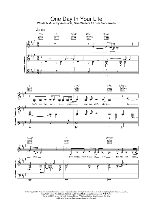 Digital Sheet Music for One Day In Your Life by Anastacia scored for Piano/Vocal/Chords; id:377533