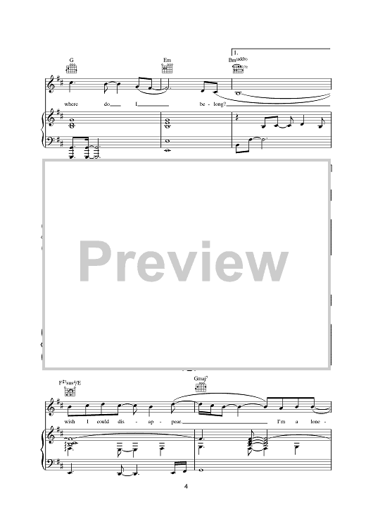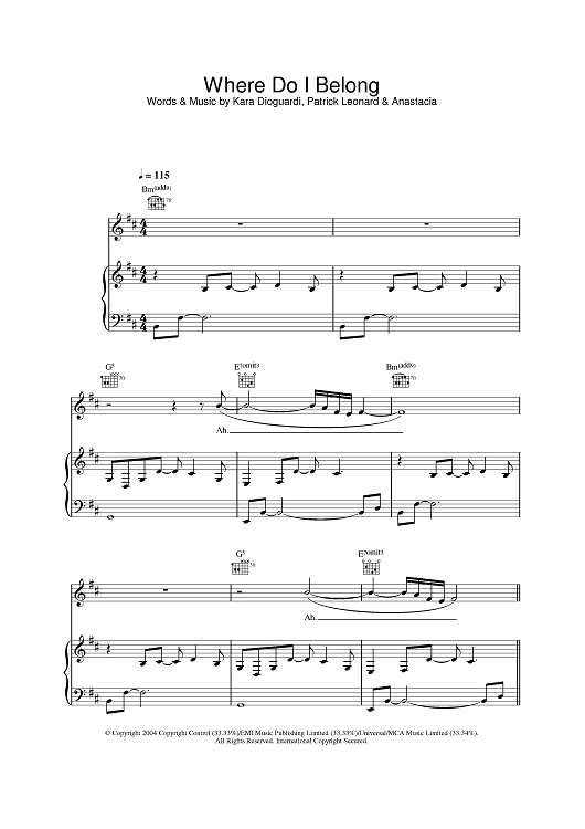 Digital Sheet Music for Where Do I Belong by Anastacia scored for Piano/Vocal/Chords; id:378474