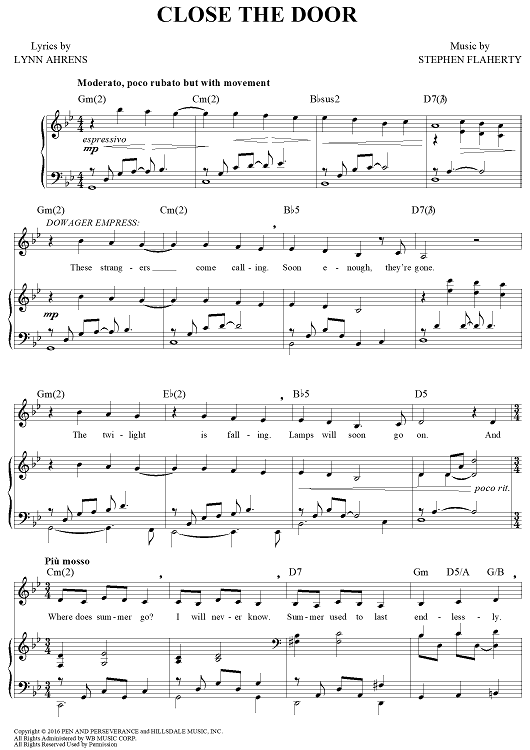 Digital Sheet Music for Close The Door - from Anastasia - The New Musical by Stephen Flaherty, Lynn Ahrens scored for Piano/Vocal/Chords; id:464418