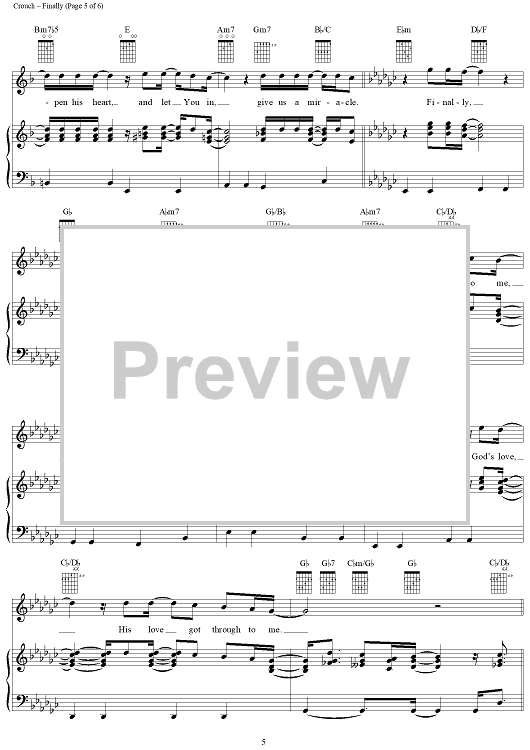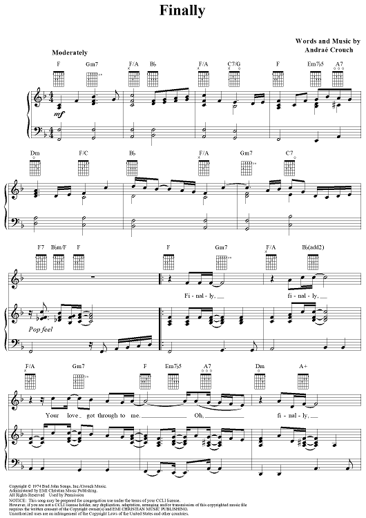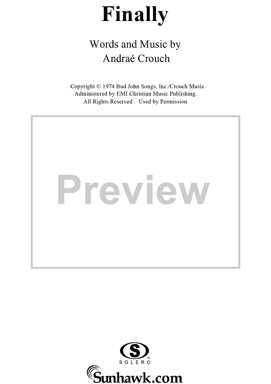 Digital Sheet Music for Finally by Andrae Crouch scored for Piano/Vocal/Chords; id:113488