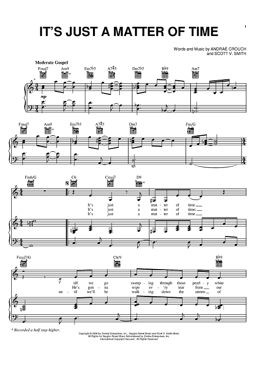 Digital Sheet Music for It's Just A Matter Of Time by Andrae Crouch, Scott V. Smith scored for Piano/Vocal/Chords; id:399831