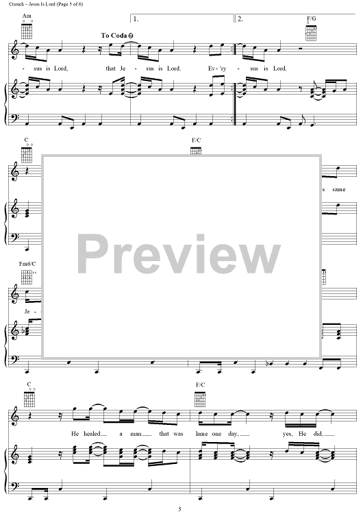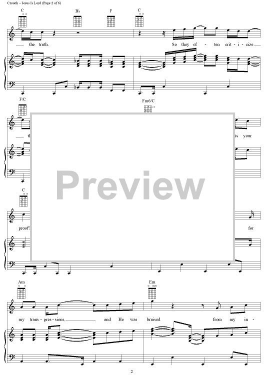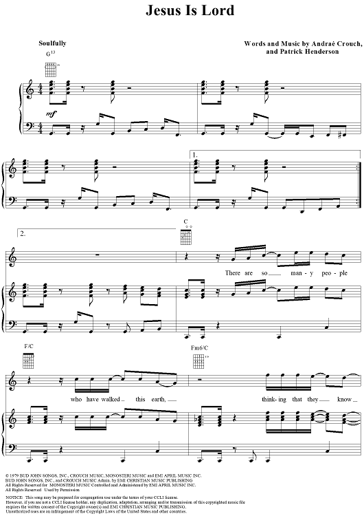 Digital Sheet Music for Jesus Is Lord by Andrae Crouch, Patrick Henderson scored for Piano/Vocal/Chords; id:111869