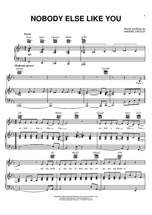 Digital Sheet Music for Nobody Else Like You by Andrae Crouch scored for Piano/Vocal/Chords; id:399835