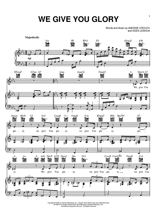 Digital Sheet Music for We Give You Glory by Andrae Crouch, Eden Joshua scored for Piano/Vocal/Chords; id:399823