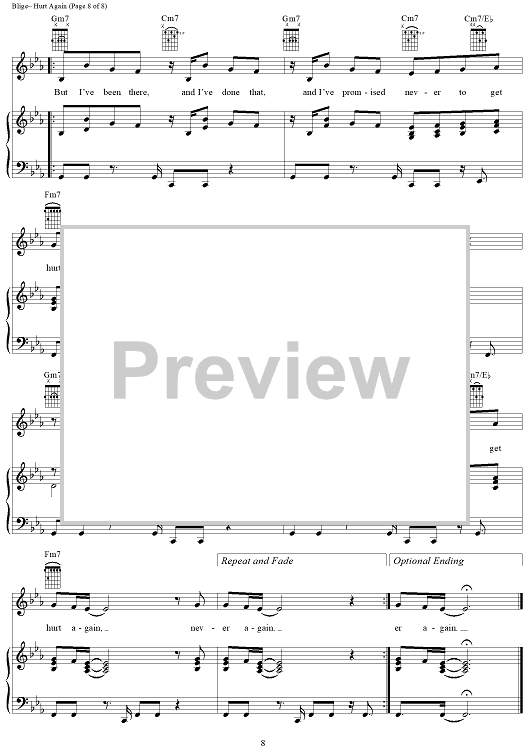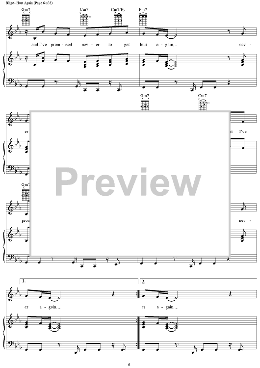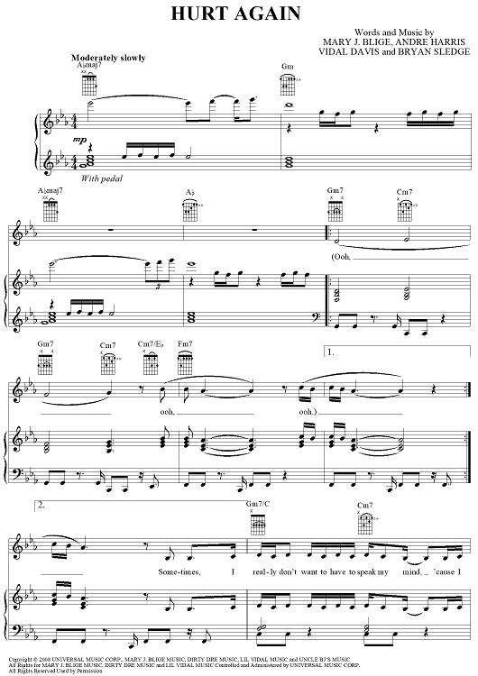 Digital Sheet Music for Hurt Again by Mary J. Blige, Andre Harris scored for Piano/Vocal/Chords; id:409895