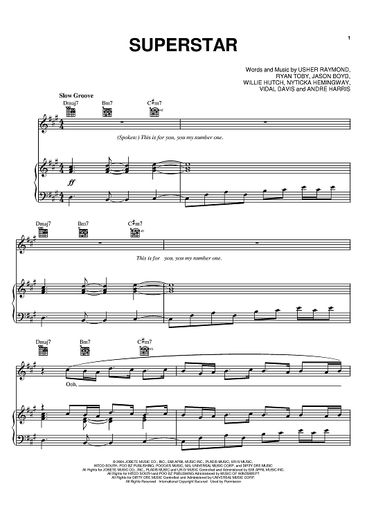 Digital Sheet Music for Superstar by Usher, Willie Hutch, Andre Harris, Jason Boyd, Vidal Davis, Nyticka Hemingway, Ryan Toby scored for Piano/Vocal/Chords; id:375334