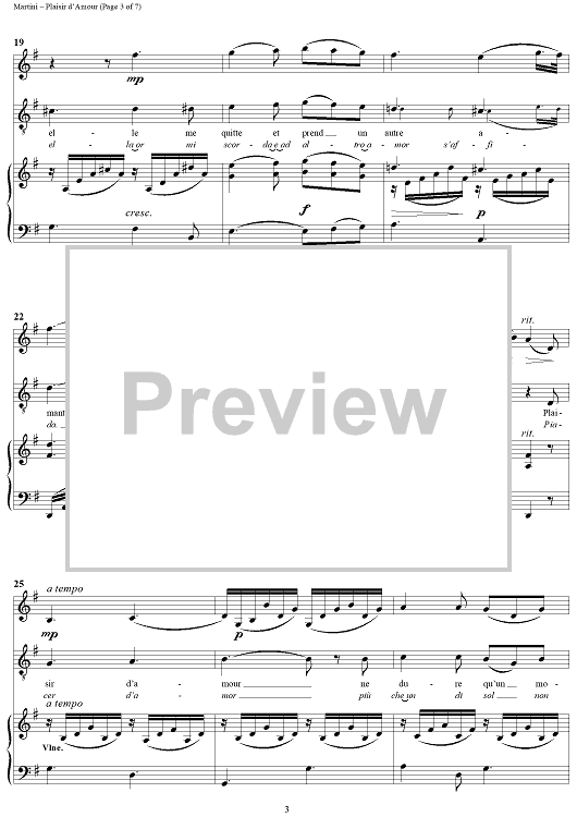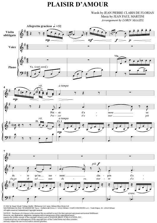 Digital Sheet Music for Plaisir d'Amour by Andrea Bocelli, Jean Paul Egide Martini, Lorin Maazel, Jean-Pierre Claris de Florian scored for Piano/Vocal/Violin; id:296225