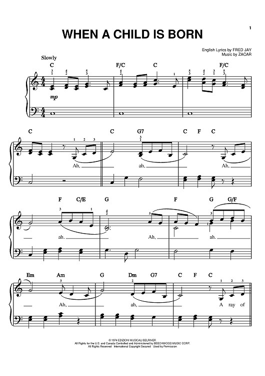 Digital Sheet Music for When A Child Is Born by Kenny Rogers, Johnny Mathis, Andrea Bocelli, Fred Jay, Antonio Zacara da Teramo scored for Easy Piano; id:372226