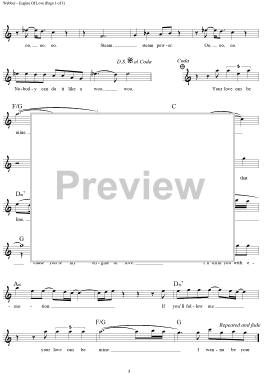 Digital Sheet Music for Engine of Love by Andrew Lloyd Webber, Richard Stilgoe scored for Lead Sheet; id:457798