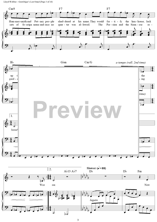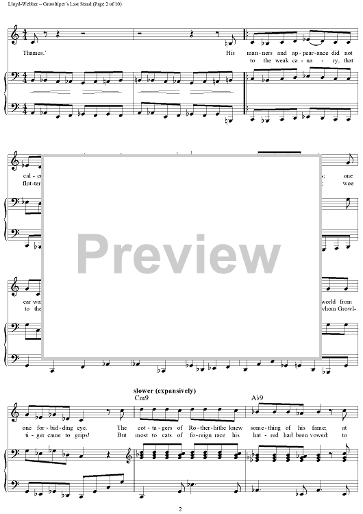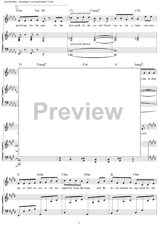 Digital Sheet Music for Growltiger's Last Stand by Andrew Lloyd Webber, T.S. Eliot scored for Piano/Vocal/Chords; id:454434