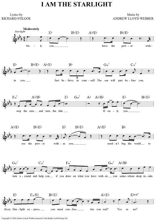 Digital Sheet Music for I Am The Starlight by Andrew Lloyd Webber, Richard Stilgoe scored for Lead Sheet; id:457801