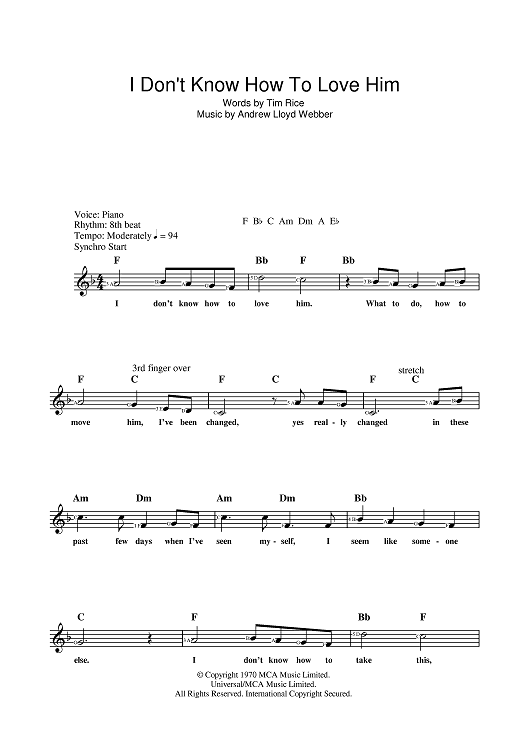 "I Don't Know How To Love Him" Sheet Music by Andrew Lloyd Webber