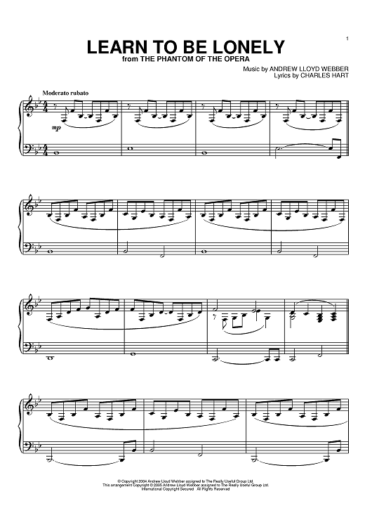 Digital Sheet Music for Learn To Be Lonely by Andrew Lloyd Webber, Charles Hart scored for Piano; id:382143