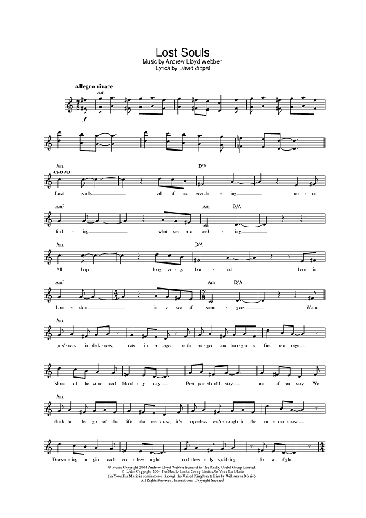 Digital Sheet Music for Lost Souls by Andrew Lloyd Webber, David Zippel scored for Lead Sheet; id:385421