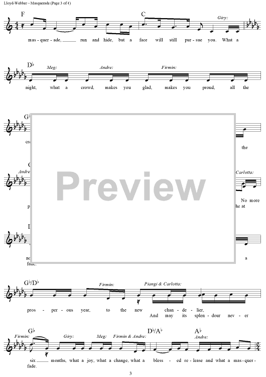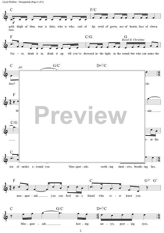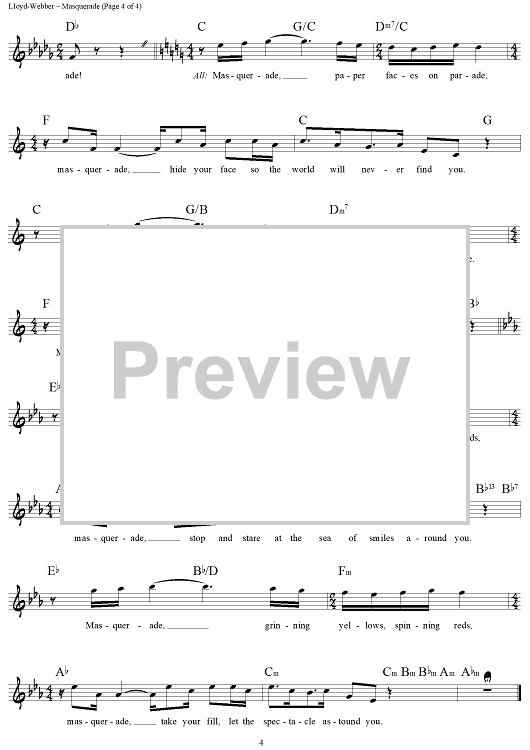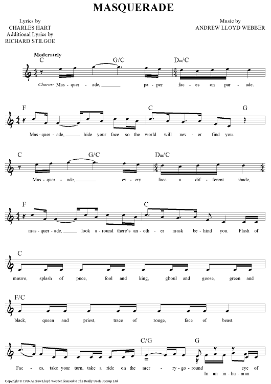 Digital Sheet Music for Masquerade by Andrew Lloyd Webber, Charles Hart, Richard Stilgoe scored for Lead Sheet; id:453372
