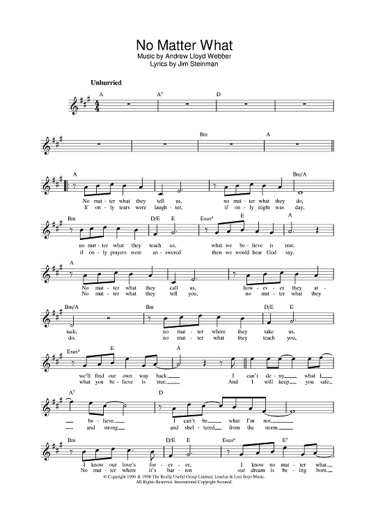 Digital Sheet Music for No Matter What by Andrew Lloyd Webber, Jim Steinman, Boyzone, Anne Godwin scored for Lead Sheet; id:376707