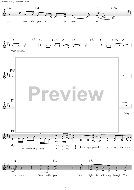 Digital Sheet Music for Only You by Andrew Lloyd Webber, Richard Stilgoe scored for Lead Sheet; id:457806