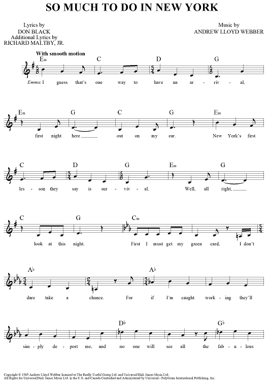 "So Much To Do In New York" Sheet Music by Andrew Lloyd Webber