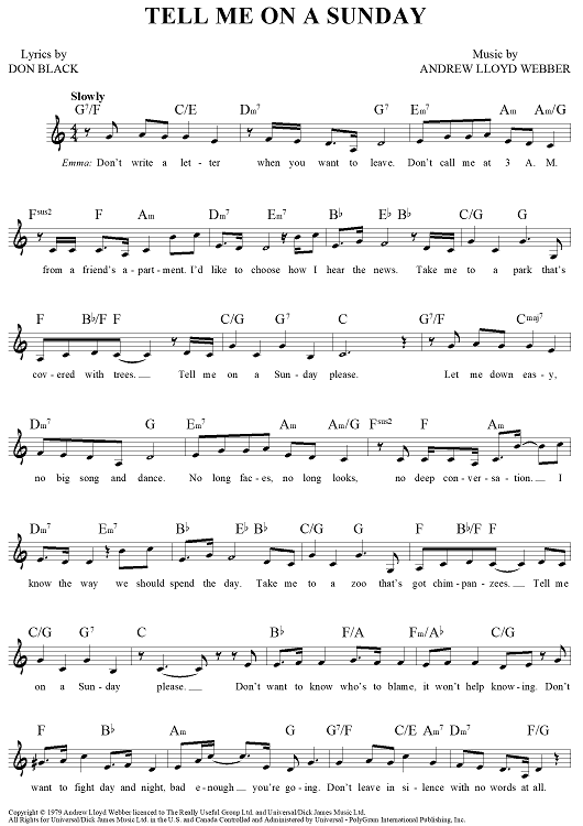 Digital Sheet Music for Tell Me On a Sunday by Don Black, Andrew Lloyd Webber scored for Lead Sheet; id:457133