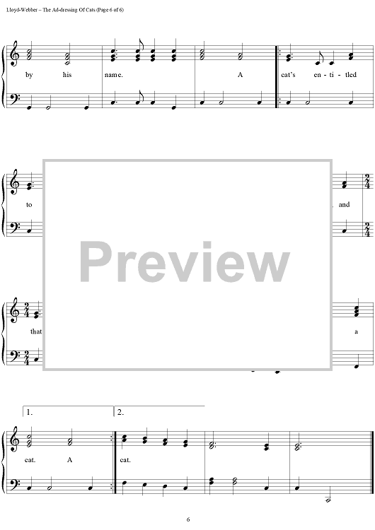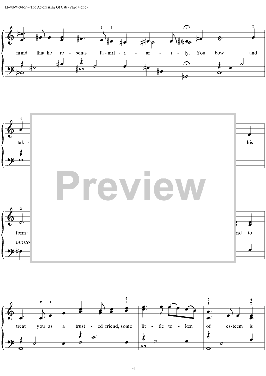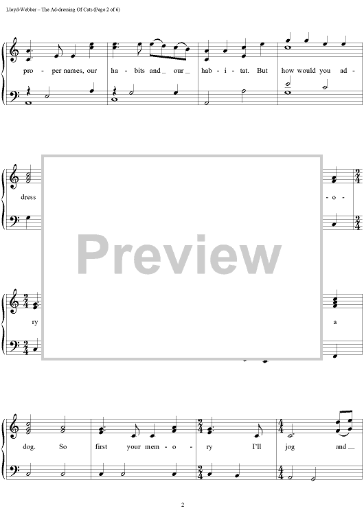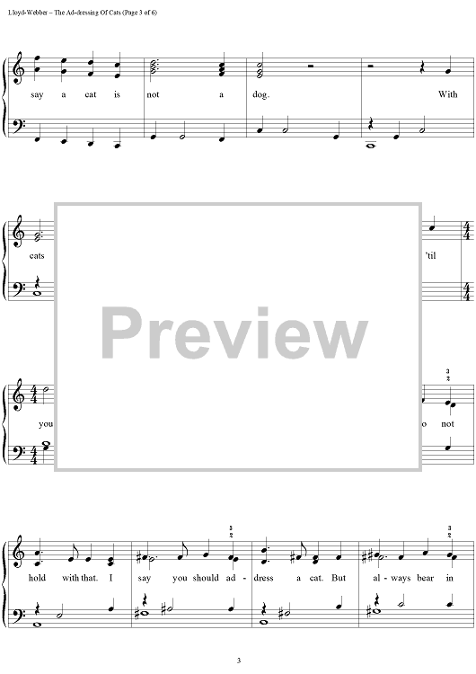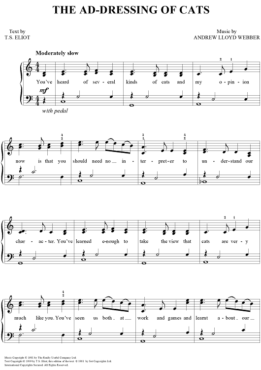 Digital Sheet Music for The Ad-dressing Of Cats by Andrew Lloyd Webber, T.S. Eliot scored for Easy Piano/Vocal/Chords; id:456353