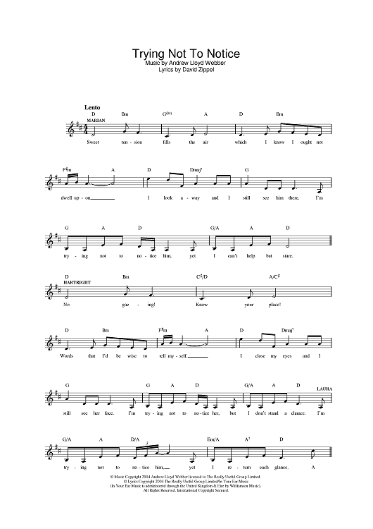 Digital Sheet Music for Trying Not To Notice by Andrew Lloyd Webber, David Zippel scored for Lead Sheet; id:385423
