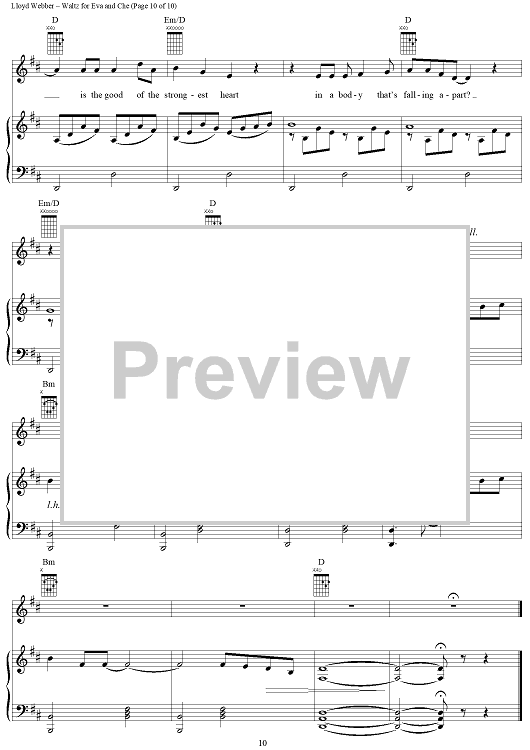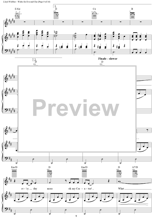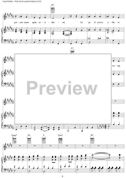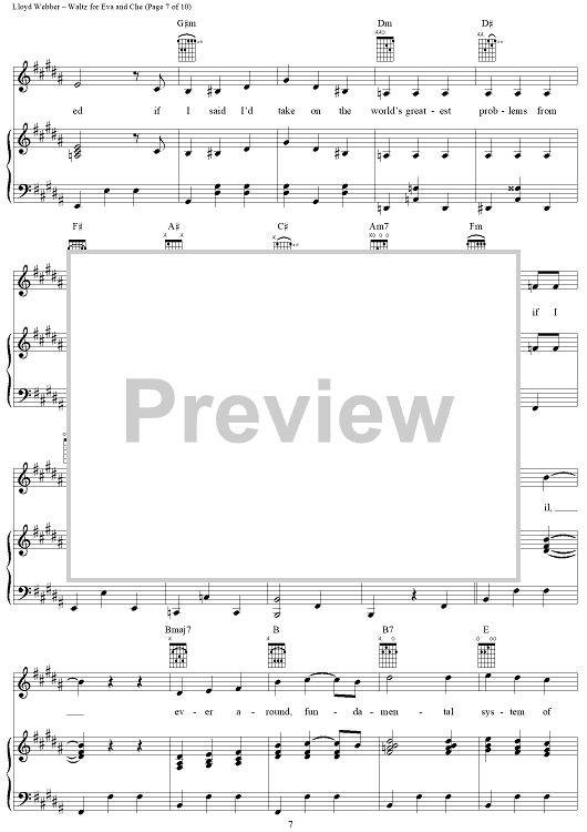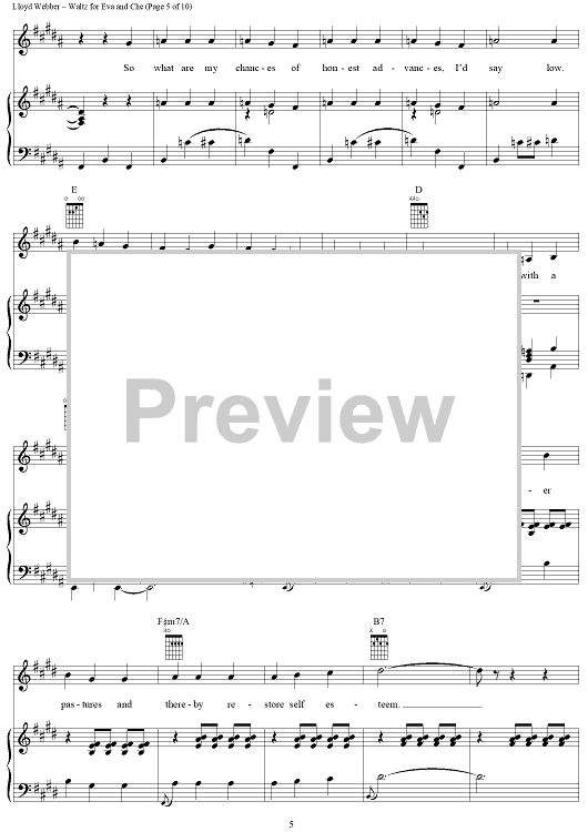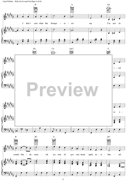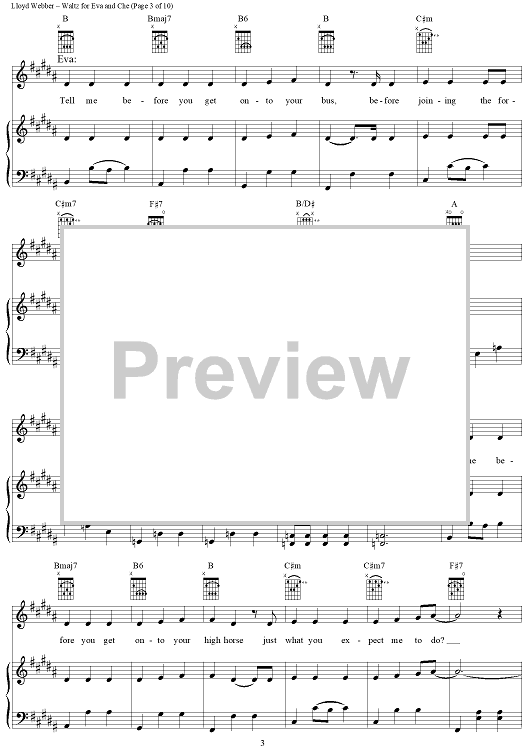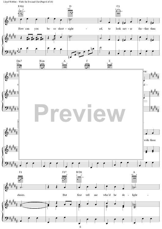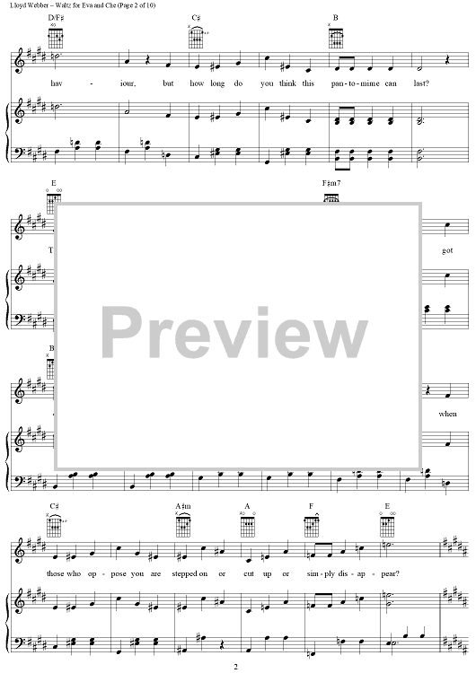 Digital Sheet Music for Waltz for Eva and Che by Andrew Lloyd Webber, Tim Rice scored for Piano/Vocal/Chords; id:379664