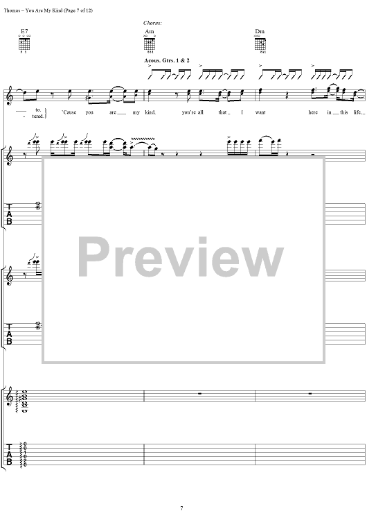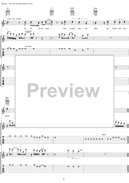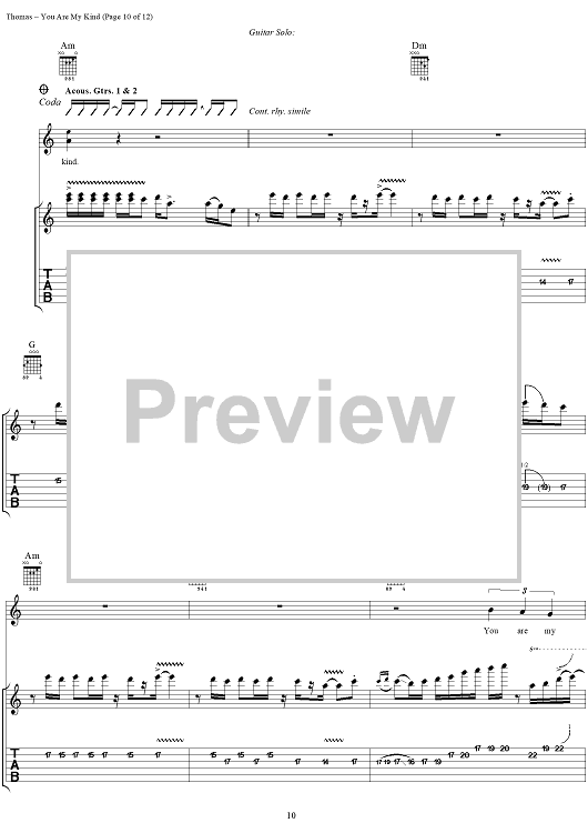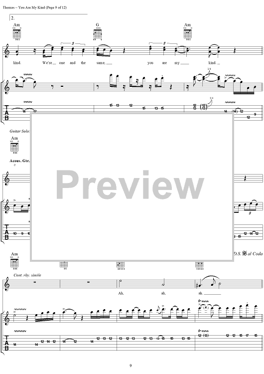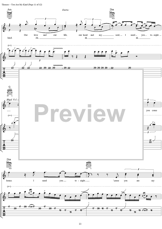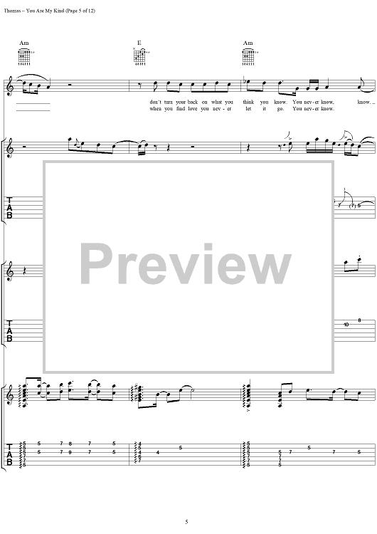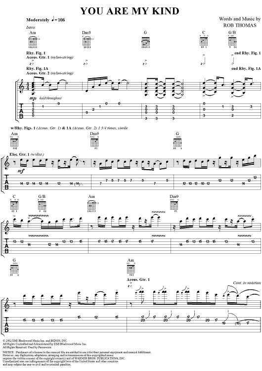 Digital Sheet Music for You Are My Kind by Rob Thomas, Santana, Angélique Kidjo scored for Guitar Tab/Vocal; id:295352