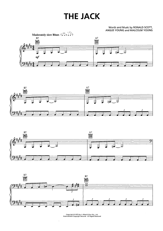 Digital Sheet Music for The Jack by Ronald Scott, AC/DC, Angus Young, Malcolm Young scored for Piano/Vocal/Chords; id:465988