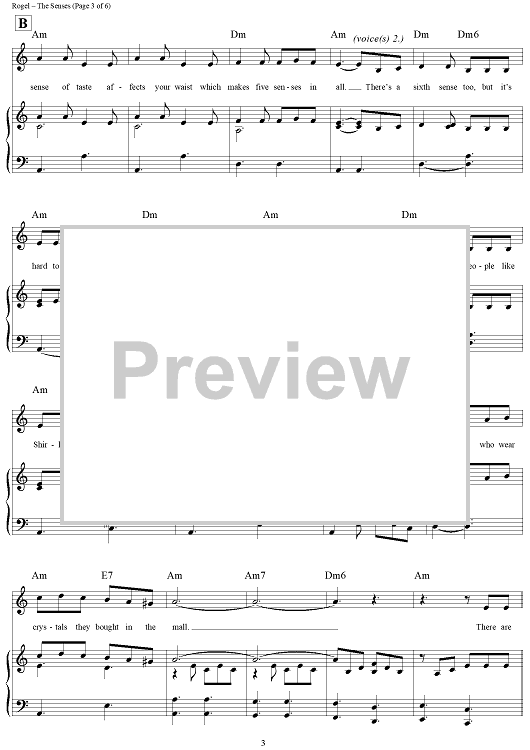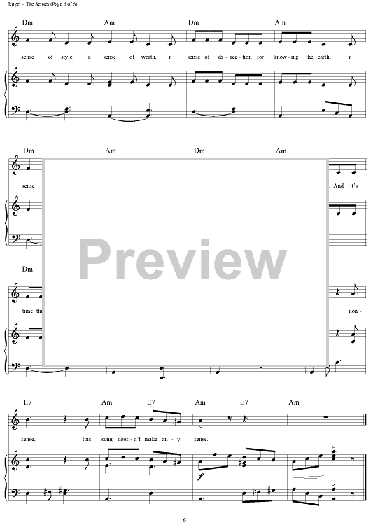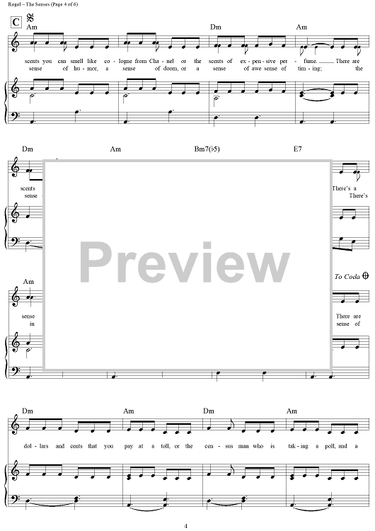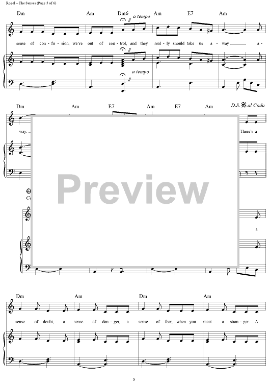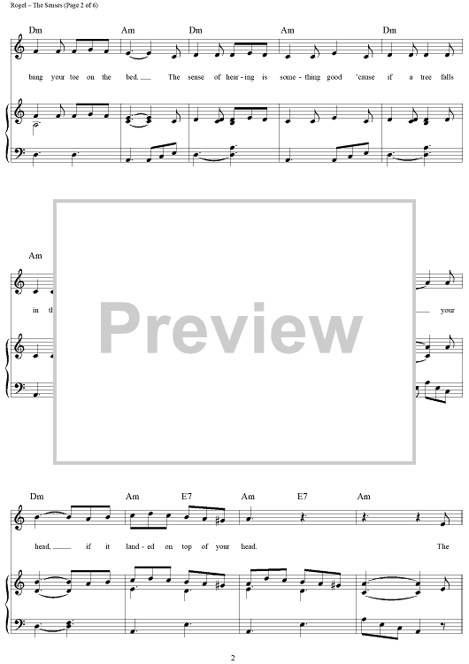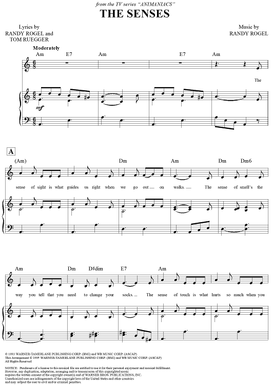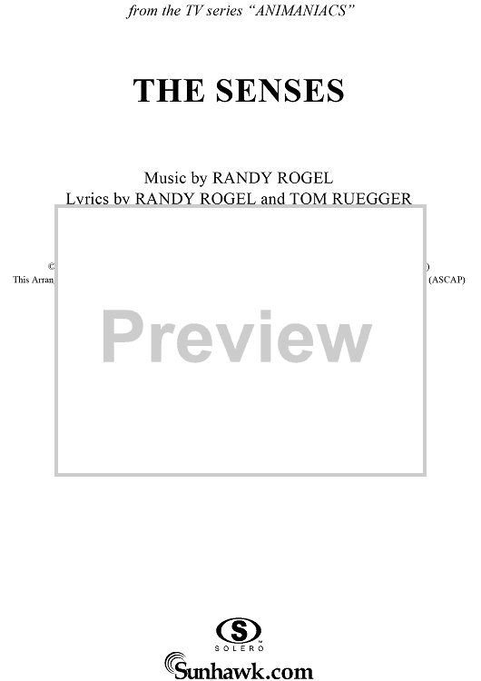 Digital Sheet Music for The Senses by Randy Rogel, Tom Ruegger scored for Piano/Vocal/Chords; id:241835