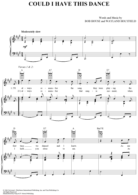 Digital Sheet Music for Could I Have This Dance by Anne Murray, Wayland Holyfield, Bob House scored for Piano/Vocal/Chords; id:286191