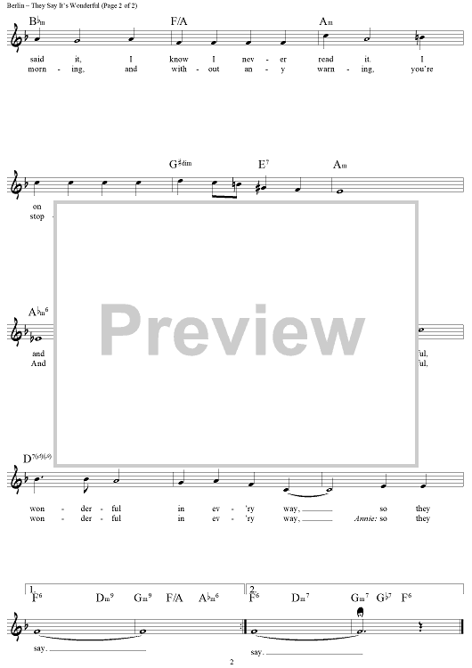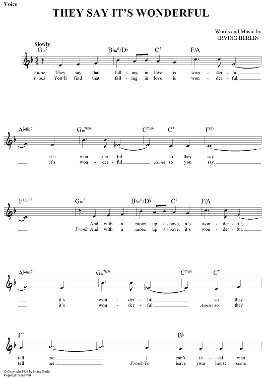 Digital Sheet Music for They Say It's Wonderful by Irving Berlin scored for Lead Sheet; id:441540