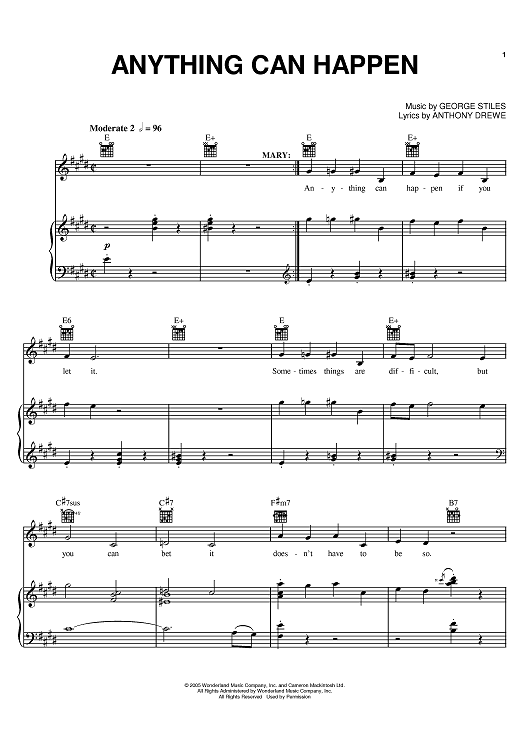 Digital Sheet Music for Anything Can Happen by George Stiles, Anthony Drewe scored for Piano/Vocal/Chords; id:397445