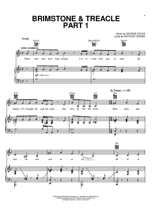 Digital Sheet Music for Brimstone & Treacle Part 1 by George Stiles, Anthony Drewe scored for Piano/Vocal/Chords; id:397447