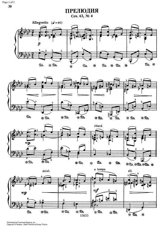 "Prelude Ab Major Op.63 No. 4" Sheet Music by Anton Arensky