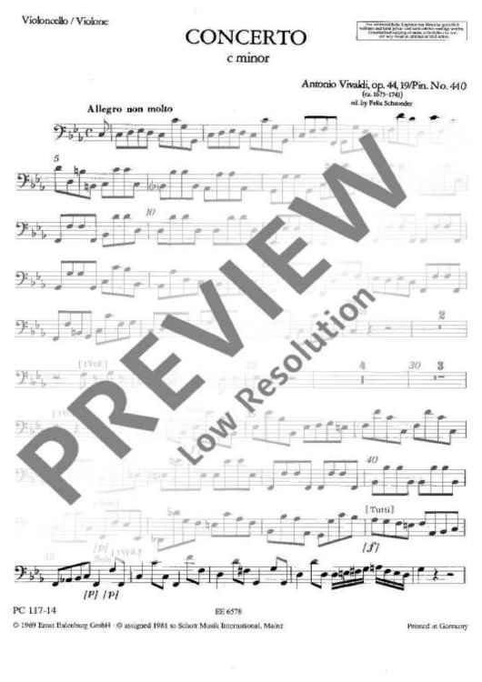 "Concerto C minor - Cello/double Bass" Sheet Music by Antonio Vivaldi
