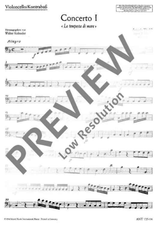 Digital Sheet Music for Concerto No. 1 F major - Cello/double Bass by Antonio Vivaldi scored for Flute (treble Recorder), String Orchestra And Basso Continuo; id:471140