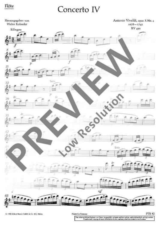 Digital Sheet Music for Concerto No. 4 G Major - Piano Score and Solo Part by Antonio Vivaldi scored for Flute (treble Recorder), String Orchestra And Basso Continuo; id:480461