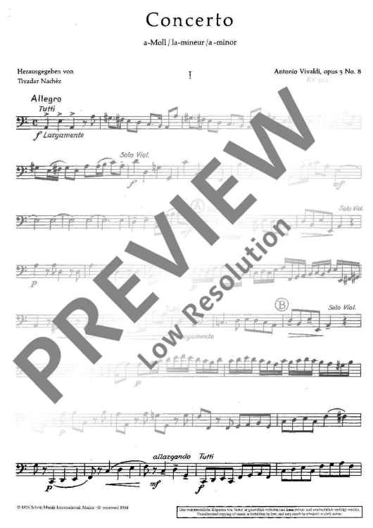 "L'Estro Armonico in A minor - Cello/double Bass" Sheet Music by Antonio Vivaldi