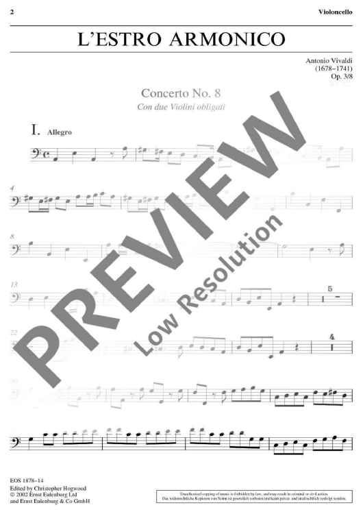 "L'Estro Armonico in A minor - Cello" Sheet Music by Antonio Vivaldi