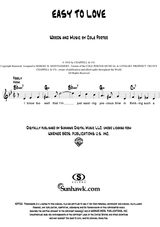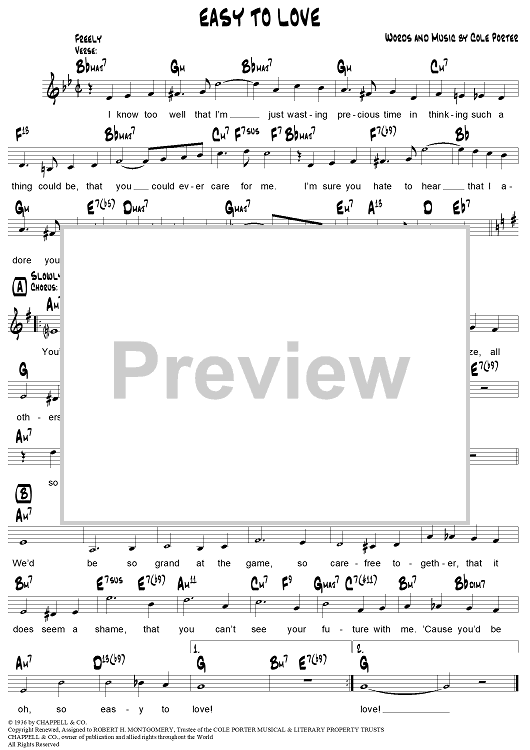 Digital Sheet Music for Easy to Love by Cole Porter scored for Lead Sheet; id:307499